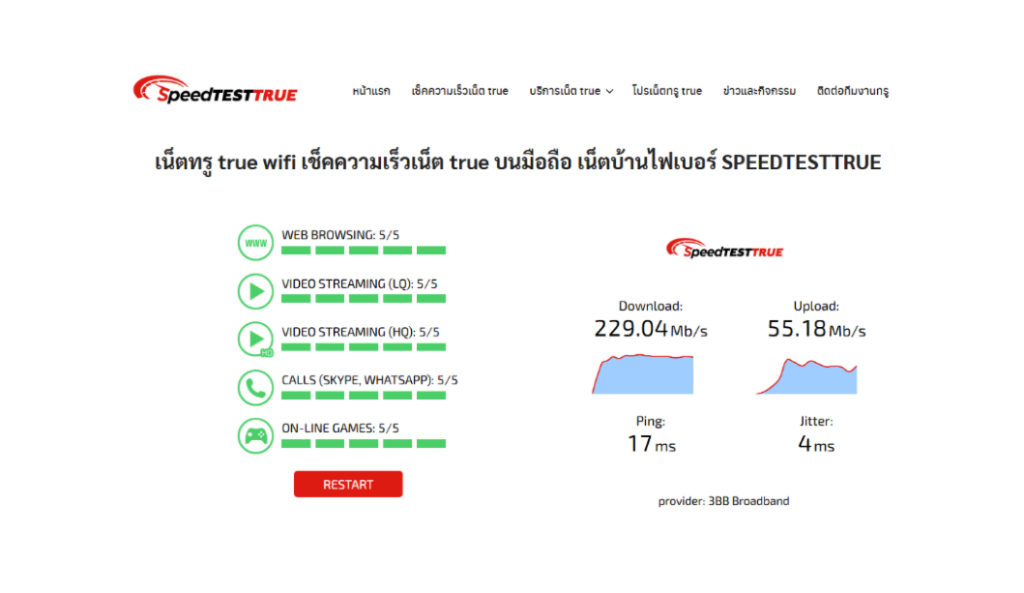 - ทดสอบด้วยเซิร์ฟเวอร์ภายในภูมิภาคไทย เลือกเซิร์ฟเวอร์ที่ใกล้ที่สุดเพื่อลดการสูญเสียสัญญาณและให้ค่าความเร็วที่สะท้อนการใช้งานจริงกับ True