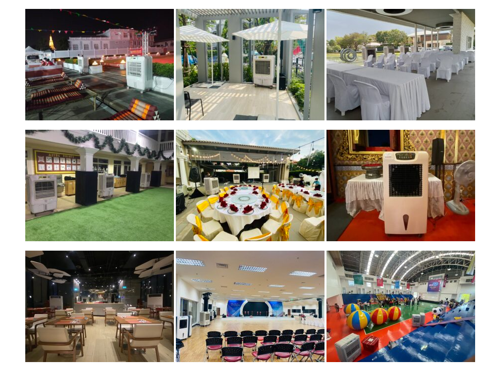 - คุณภาพที่เชื่อถือได้ พัดลมไอเย็นของ Yushi มีกำลังลมแรงและกระจายความเย็นได้อย่างทั่วถึง ช่วยลดอุณหภูมิในพื้นที่จัดงานได้อย่างมีประสิทธิภาพ ทำให้แขกที่มาร่วมงานรู้สึกสดชื่นและสบายตัวตลอดเวลา
